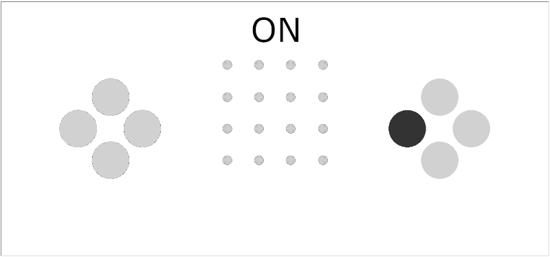 each dot represents a step in the looping 16-step pattern, playback is indicated by chasing light.